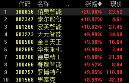 新型工业化概念表现强势,佰奥智能等多股涨停