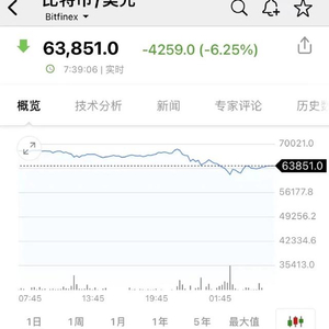 比特币盘中一度突破6.9万美元创历史新高,但随后暴跌,日内一度跌超10%,目前位于63851美元附近。