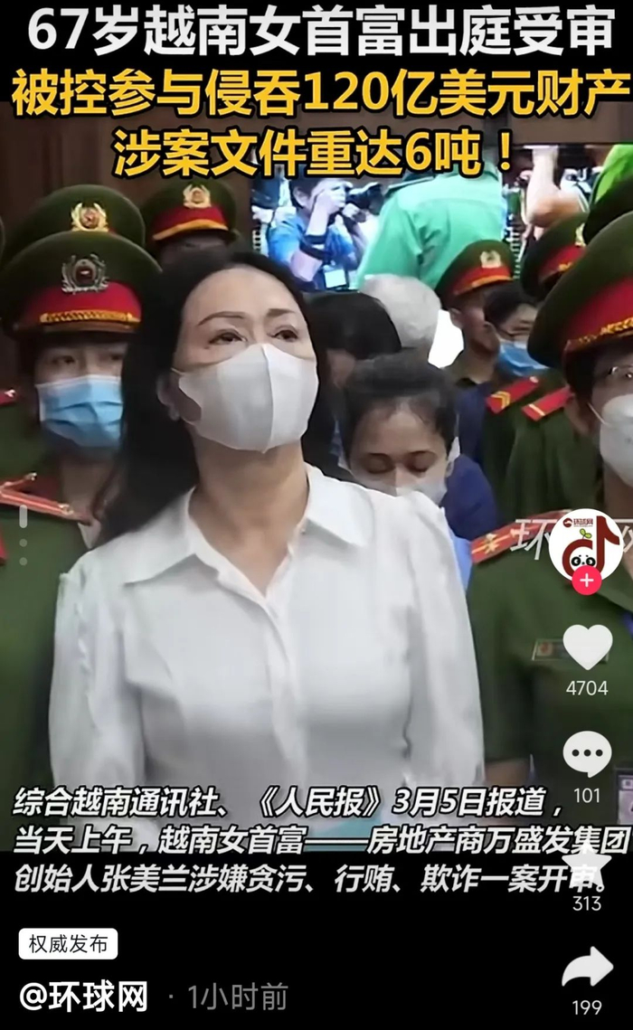 67岁越南女首富出庭受审!被控参与侵吞120亿美元财产,涉案文件6吨重