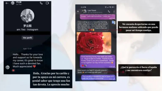 被骗的西班牙女子50岁,受过高等教育、已婚、有孩子。起初,她看了电视剧《长月烬明》,并在Instagram上关注了“罗云熙”账号。
