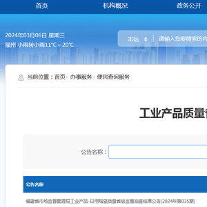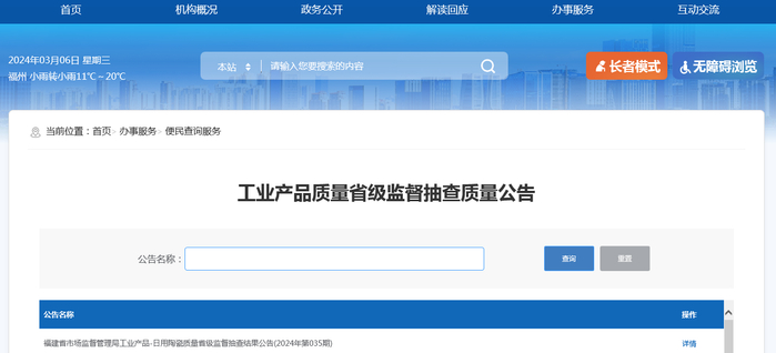 福建省市场监督管理局工业产品-日用陶瓷质量省级监督抽查结果公告(2024年第035期)