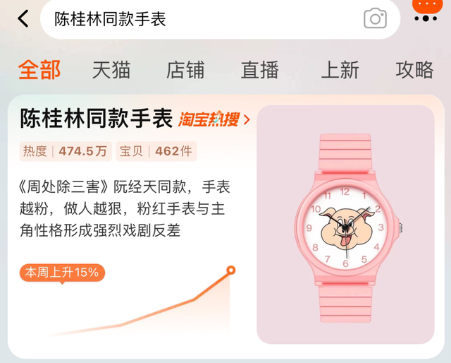 三月伊始,电影《周处除三害》火了!其中电影主人公陈桂林佩戴的粉色小猪手表更是意外走红,陈桂林同款手表”搜索量猛增,冲上了淘宝热搜。