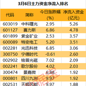 从个股来看,今日8股主力资金净流入超2亿元,其中5股净流入超3亿元。