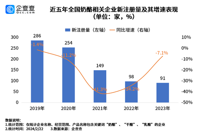 企查查数据显示,2019年以来,我国关键词为“奶酪”“干酪”“乳酪”的新注册企业达到883家。