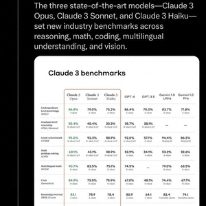 Anthropic发布的跑分显示,Opus在多项基准测试中得分都超过了GPT-4 和Gemini 1.0 Ultra,拥有接近人类本科生水平的知识,“在数学、编程、多语言理解、视觉等多个维度树立了新的行业基准”。