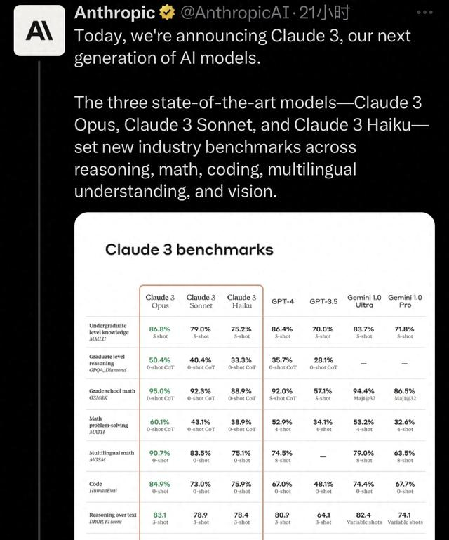 Sora给科技圈带来的冲击还未平静,Claude 3又来了。