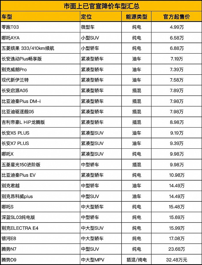不同于高端市场的油电之战,这种强度的降价对25万以下的主流市场无异于直接拼刺刀。