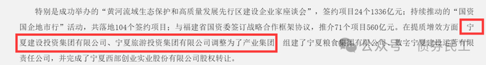 1、根据宁夏国资委官网于2024年3月6日披露的《宁夏国资国企新一轮改革提升“全景图”逐渐浮现》,明确在宁夏建设投资集团有限公司和宁夏旅游投资集团有限公司的基础上调整为了产业集团。目前企业预警通上尚未查询到宁夏产业集团的具体信息,工商手续可能正在变更过程中。