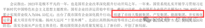 根据扬州市国资委官网于2024年3月6日披露的《全市国有资产监督管理工作会议顺利召开》,扬州市在2023年已经组建了产发集团并实体化运营。债券民工查询了一下,扬州产发集团应该是指“扬州产业投资发展集团有限责任公司”,原名为江苏金茂工业资产管理有限公司,成立于2020年12月,注册资本20亿元,已经在2024年1月15日进行了企业名称变更。