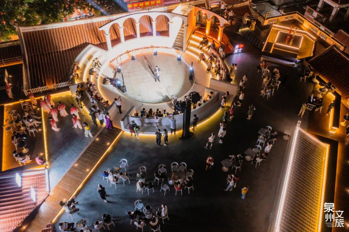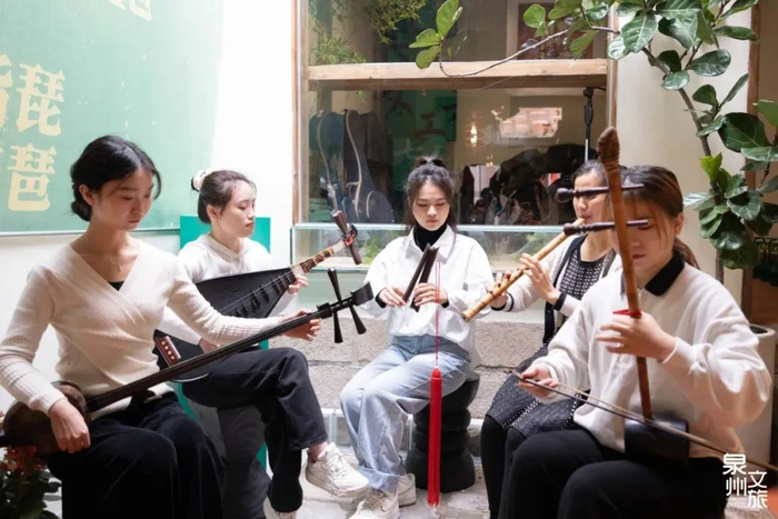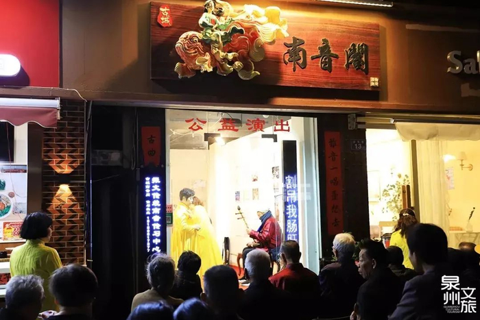 在泉州古城还有其他空间,如「古厝茶馆」、「小城隍口茶铺」、「厝边欢喜」等地,可以预约定制南音演出,还可在双层巴士上听南音、游古城。