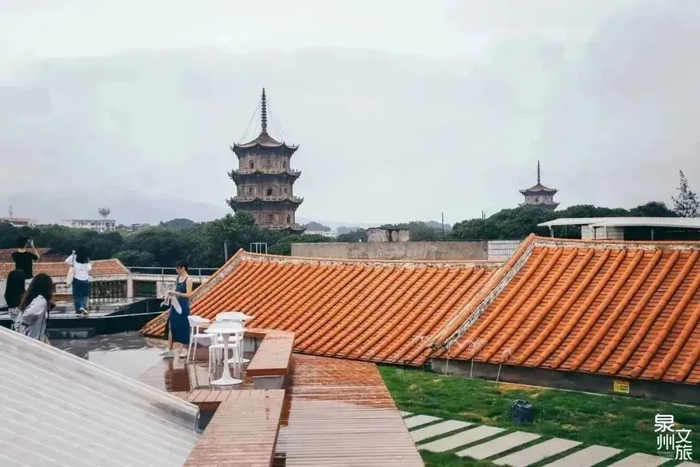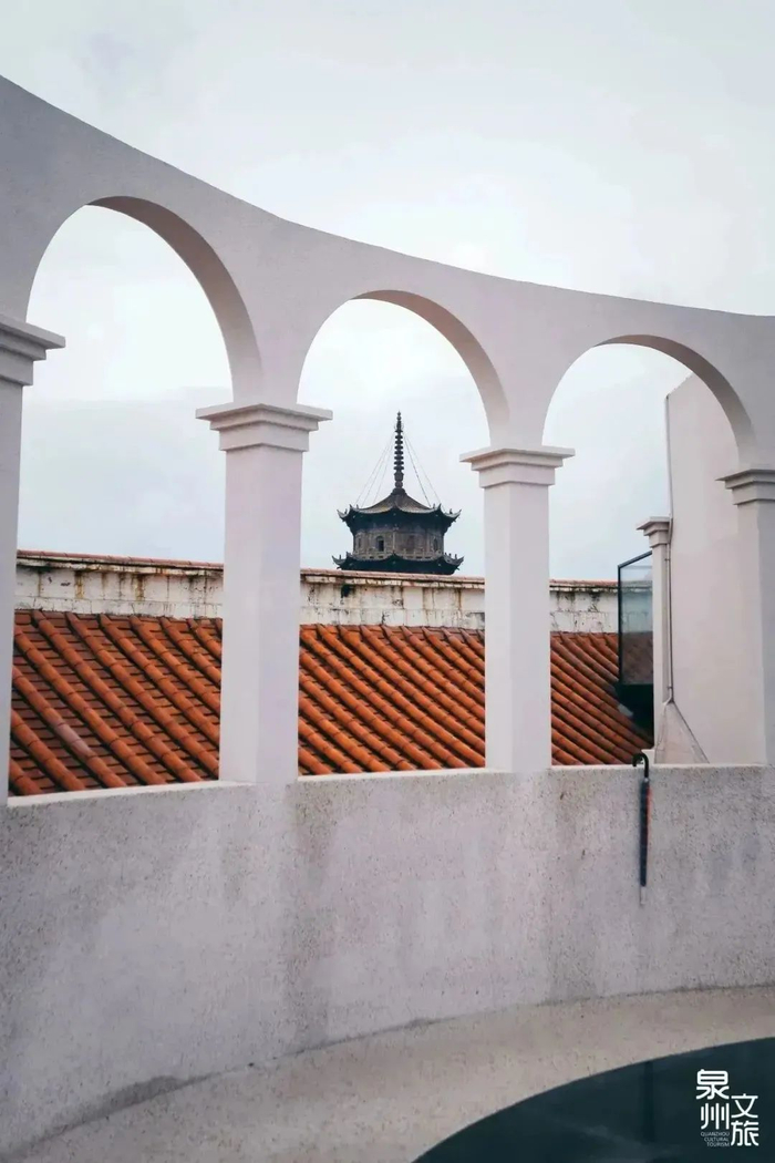 7FUN天台以红砖厝顶为主,横搭起异国特色的罗马柱与拱圆舞台,东望开元寺与东西塔,北临教堂礼颂钟响。这个天台汇集各类代表泉州的独特历史元素,在这样的天台上欣赏非遗艺术表演,来一场与泉州历史的“对话”,相信不论谁都能获得难忘的体验。