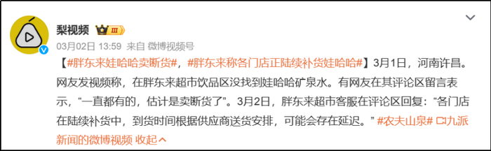 有的网友质疑胖东来不卖国货,逼得胖东来出来辟谣,是娃哈哈卖断货了,否则拥有美好名声的胖东来也可能一夜之间“不爱国”了。