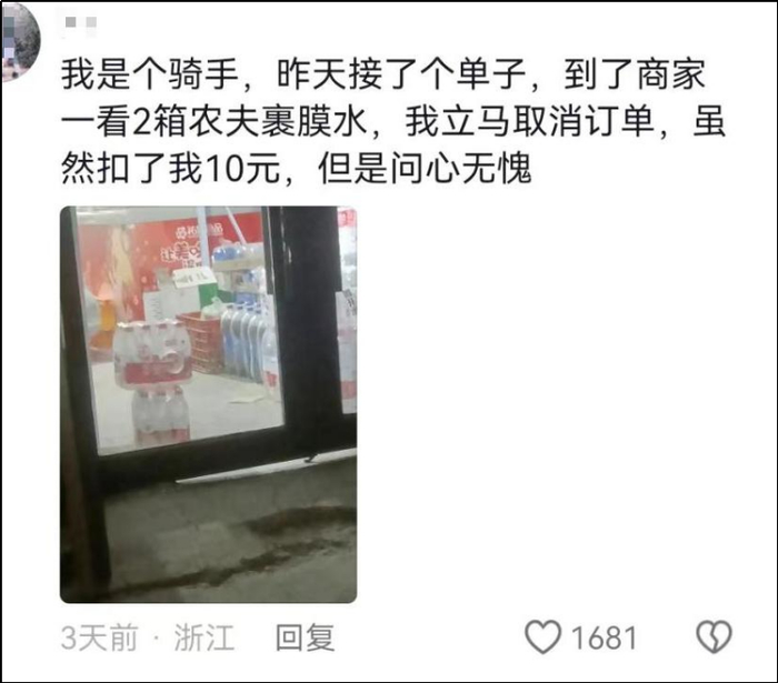 你是走街串巷的外卖员,就不能送农夫山泉矿泉水了。