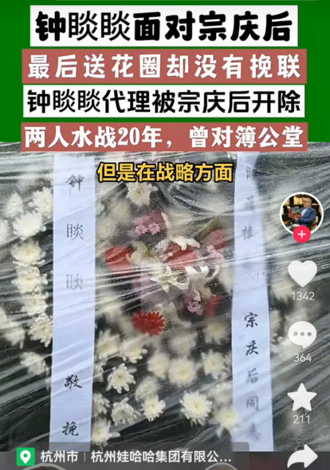 原来娃哈哈创始人宗庆后去世后,有网友发现同样身为浙商的农夫山泉董事长钟睒睒没有亲自来吊唁。
