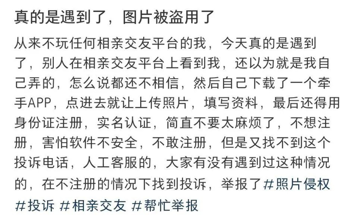 已婚女子投诉称微信头像被相亲平台账号盗用
