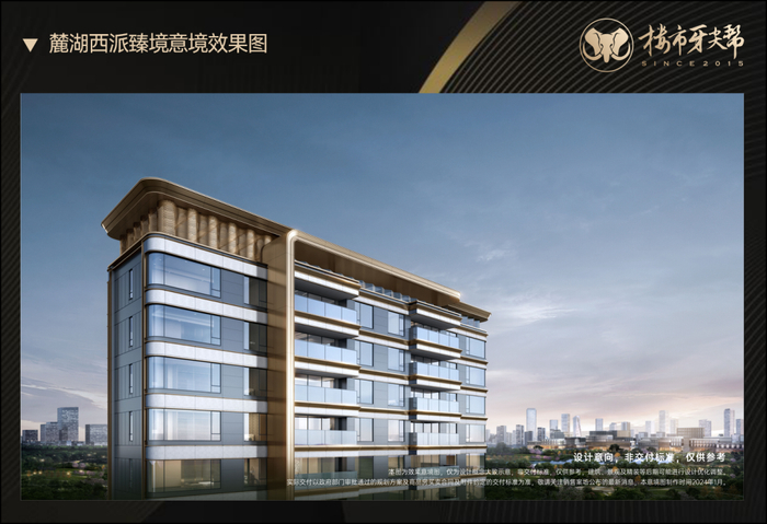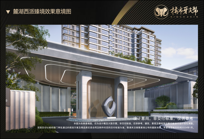 麓湖西派臻境为契合麓湖板块的业主的身份,在建筑外立面上创造出独树一帜的现代轻奢爵系立面,成就一座傲立于时代的颜值标杆。