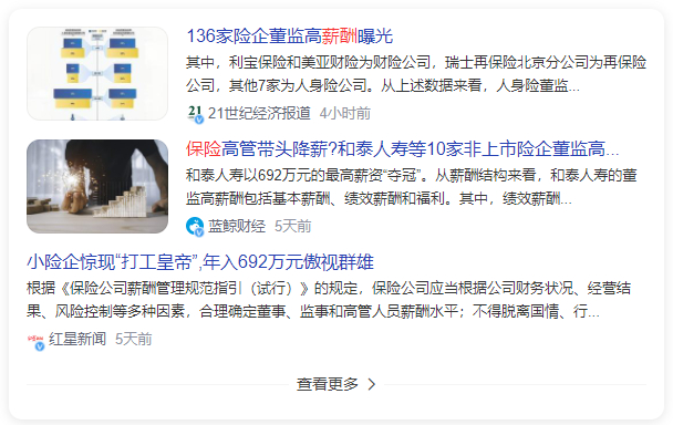 上市险企2023年的薪酬数据虽然尚未披露,但以2022年的上市险企高管薪酬情况来作比较,和泰人寿最高薪资水平也可排进前10。