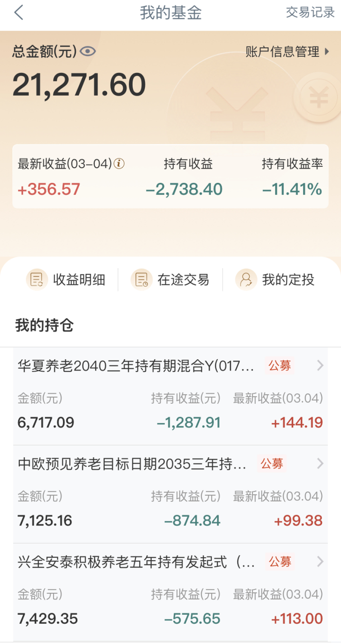 采访中,记者遇到了职业经理人尹先生。此前,他已开户缴存、但未投资产品,“我有朋友亏损了20%左右,个人养老金要么买定存,要么当抵税工具用用就好。”