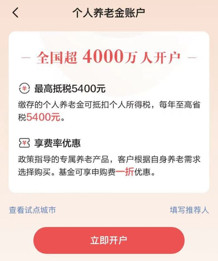 “最高可抵税5400元。即使这笔钱完全不增值,收益率也跑赢了绝大部分理财。”大恩哥告诉记者,对80后、90后中等收入人群来说,个人养老金制度还是挺“香”的。