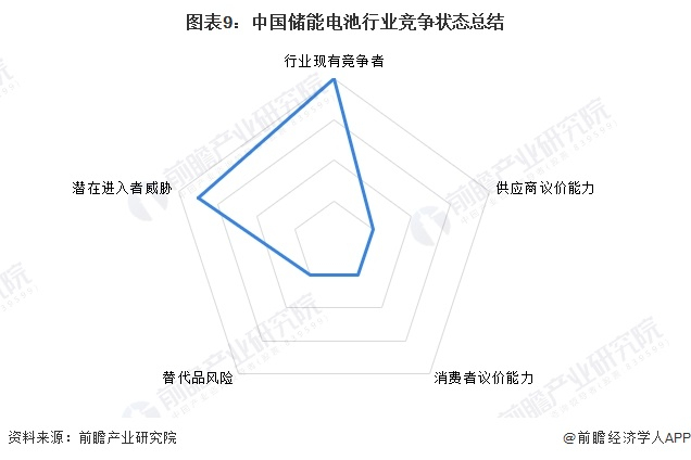 从五力竞争模型角度分析,目前我国储能电池相关企业数量多,几乎所有的头部锂电企业都比较重视储能市场,竞争压力大。上游各主要原材料领域均有较多企业参与,供应商对储能电池产业的议价能力相对较弱。储能在未来我国能源体系建设中的关键地位愈发突显,行业吸引力较强,储能电池行业潜在进入者威胁较大。电池储能安装灵活、地理条件约束小、成本下降速度快,发展优势较大,目前替代品风险一般。目前我国储能电池五力竞争总结如下: