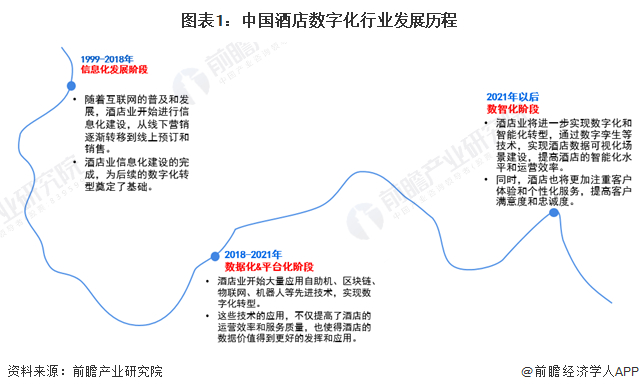 1999-2018年是中国酒店业信息化发展阶段。随着互联网的普及和发展,酒店业开始进行信息化建设,从线下营销逐渐转移到线上预订和销售。酒店业信息化建设的完成,为后续的数字化转型奠定了基础。2018-2021年是中国酒店业数据化发展阶段,这个阶段中国酒店业开始大量应用自助机、区块链、物联网、机器人等先进技术,实现数字化转型。这些技术的应用,不仅提高了酒店的运营效率和服务质量,也使得酒店的数据价值得到更好的发挥和应用。2021年以后酒店业进一步实现数字化和智能化转型,通过数字孪生等技术,实现酒店数据可视化场景建设,提高酒店的智能化水平和运营效率。