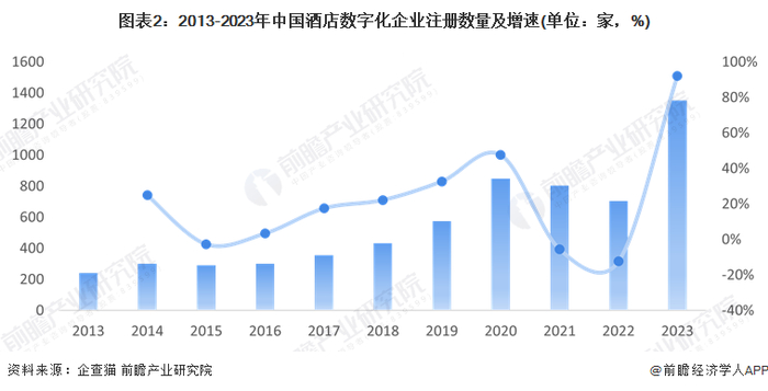 2、中国酒店数字化企业注册数量