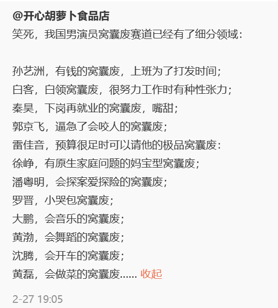 “普通四十岁男演员不是被生活磋磨成窝囊废,就是走上了厅局风。