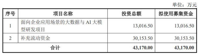 中证智能财讯 慧博云通(301316)3月7日晚间发布定增预案,公司拟向实际控制人余浩发行不超3000万股,发行价格为14.39元/股,募集资金总额为不超4.317亿元,投入面向企业应用场景的大数据与AI大模型研发项目及补充流动资金 。