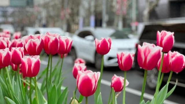 春暖花开时节,上海街头的郁金香陆续绽放。