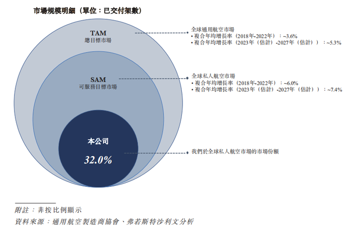 私人航空市场的发展主要由主要市场参与者于新产品研发及升级方面的能力所贡献及推动。根据通用航空制造商协会的资料,私人飞机于2023年的全球交付规模为2,215架。