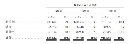 北美一直是这家出身于美国的飞机制造商的主要销售市场。过去三年内,西锐飞机在北美区域的收入占比一直在八成左右,2023年达到83.1%。