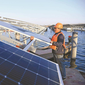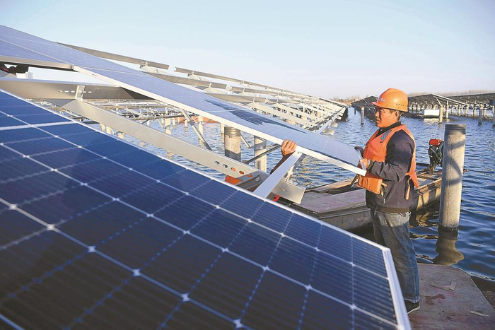技术人员进行光伏板主动标识数据采集载体安装
