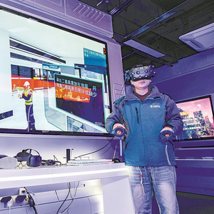 四川物通科技有限公司的技术人员演示虚拟现实职业培训系统
