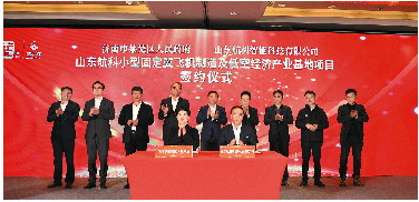 近日,山东航科小型固定翼飞机制造及低空经济产业基地项目签约仪式举行。商务部电子商务和信息化司原巡视员聂林海,济南市副市长谢堃,莱芜区区委书记焦卫星,工业和信息化部信息中心原总工程师童晓民,山东航科智能科技有限公司董事长亓涛,济南产发集团副总经理李战吉,莱芜高新区党工委副书记、管委会主任于炳基,区委常委、副区长付华,区委常委、区委办公室主任弭学峰等参加签约仪式。