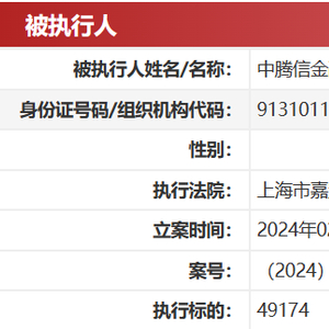 近日,中国执行信息公开网显示,中腾信金融信息服务(上海)有限公司(下简称“中腾信”)遭上海市嘉定区人民法院强制执行,执行标的将近5万元。