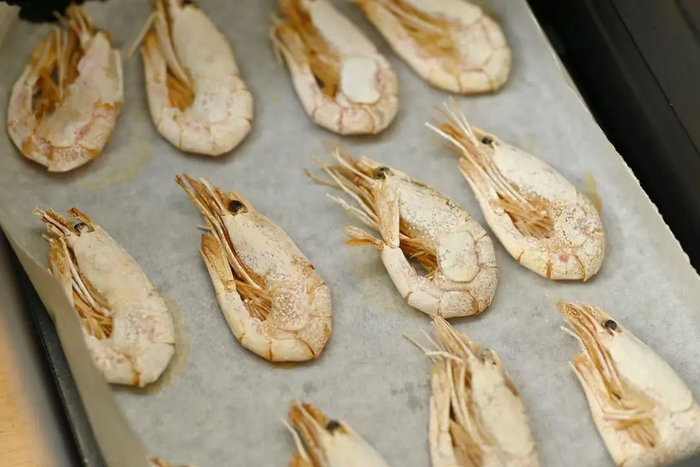 烤好后的甜虾,壳肉已经分离,直接剥壳吃紧实Q弹的虾肉!