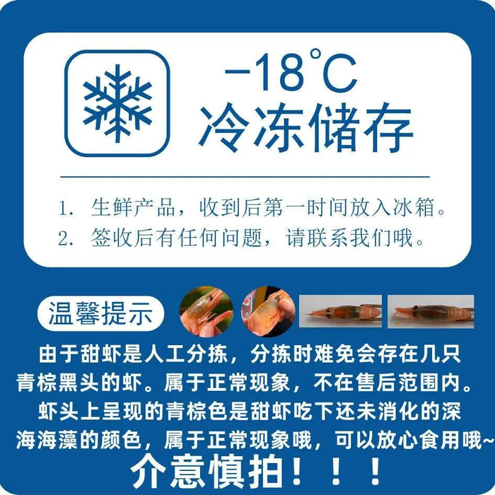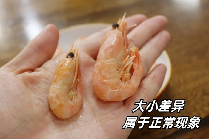 小提示:甜虾都是人工分拣,难免有大小差异,偶尔也会有几只偏小的虾虾,大小差异问题不在售后范围内,请知悉~