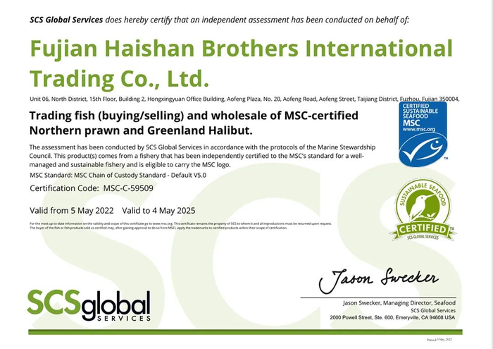 通过了MSC认证,表示该产品源自符合国际海洋理事会的环境标准的海域,并且符合良好管理和可持续捕捞的要求。