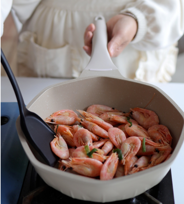 放入不粘锅里,加入喜欢的绿叶菜小火炒几分钟,一盘热乎乎、营养丰富的北极甜虾就搞定啦!厨房小白也能轻松做~
