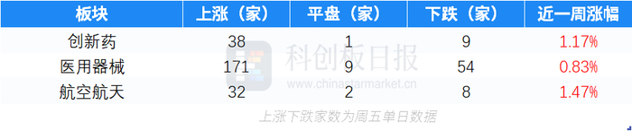 作为对比,本周创新药、医用器械、航空领域二级市场表现如下表所示。