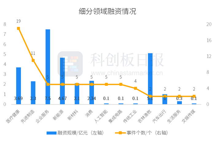 从投资事件数量来看,本周医疗健康、先进制造、企业服务、新能源、新材料、消费、人工智能、集成电路等领域较为活跃;从融资总额来看,热门赛道中企业服务披露的融资总额最多,约为7.5亿元;CAE仿真根技术研发公司云道智造完成由建信信托、大湾区共同家园投资公司联合领投,中关村科学城公司、顺澄资本、银河证券、科力创投、深投控资本、红土崇实、招银国际等机构跟投的新一轮7亿元战略融资,为本周披露金额最高的投资事件。