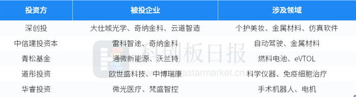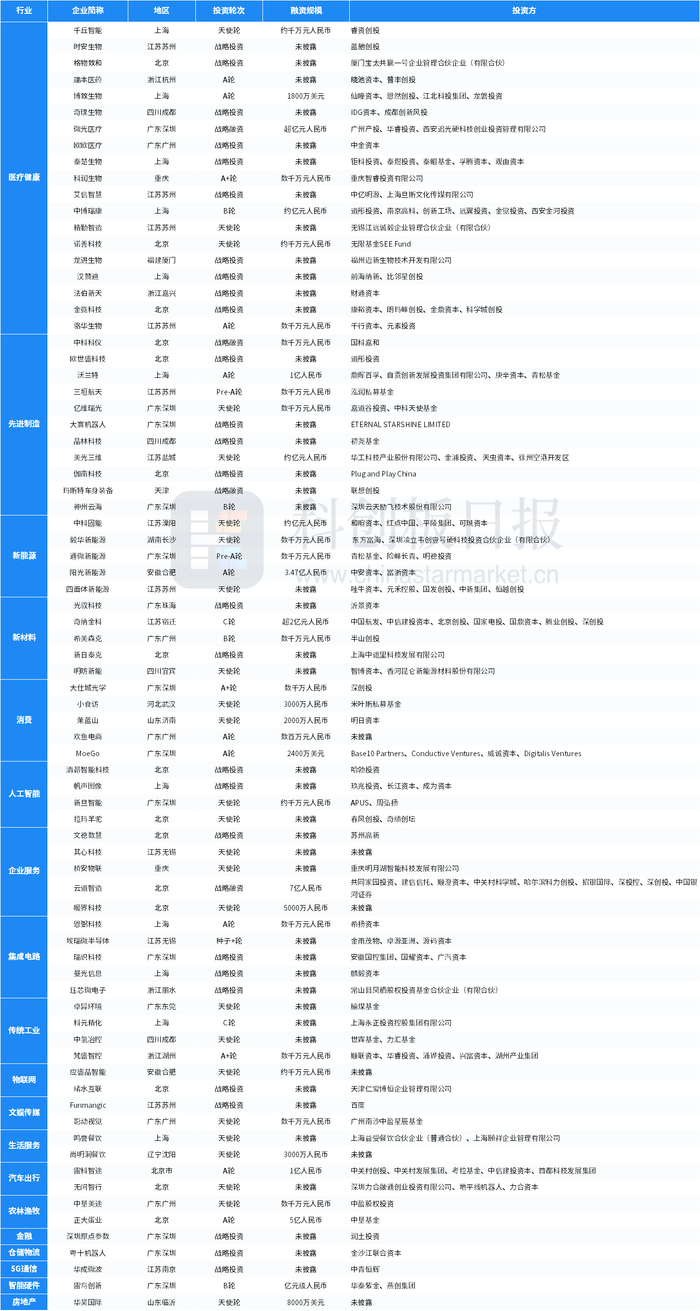 本周的投资方包括红点中国、源码资本、蓝驰创投、东方富海、华睿投资、青松基金、险峰长青、仙瞳资本、IDG资本、道彤投资、中金资本、鼎晖百孚等知名投资机构;