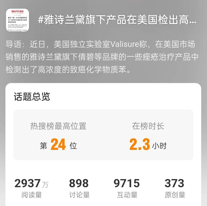 但对于苯含量究竟是否超标的追问,雅诗兰黛方面并未回复。