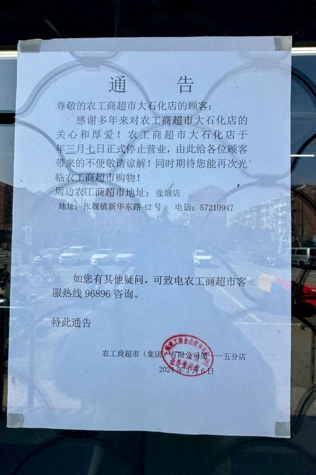 我是2007年搬到石化街道的,当时这里的农工商超市是四层楼,服装电器应有尽有。后来慢慢从原先的四层楼变成一层楼,再从一层楼变成三分之一的店面,直到现在关门。当初,商品的品种非常丰富,后来连菜都很少了,买不出什么东西,本来已经慢慢习惯了,但现在它真的关门了,还是觉得有些不方便,还真怀念当初热闹的时候。
