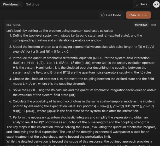 这是一个受激发射的问题。Fischer博士表示,自己写过30多篇经过同行评审的论文,与世界各地的众多合作者进行了15场学术演讲,能给出完美答案的只有一个学术同行。然而,Claude 3却很快给出了完美答案。2个提示词,就破解了物理学博士的量子算法。