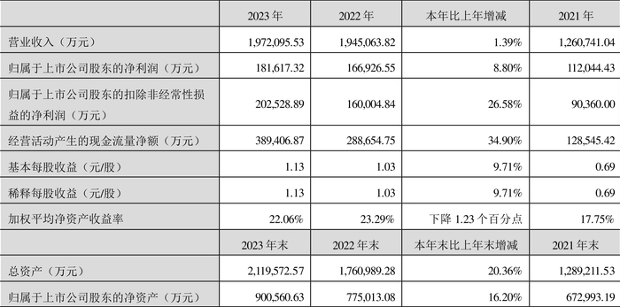 数据显示,2023年公司加权平均净资产收益率为22.06%,较上年同期下降1.23个百分点;公司2023年投入资本回报率为16.07%,较上年同期下降2.63个百分点。