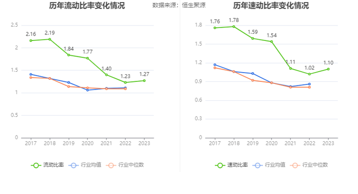2023年,公司流动比率为1.27,速动比率为1.1。