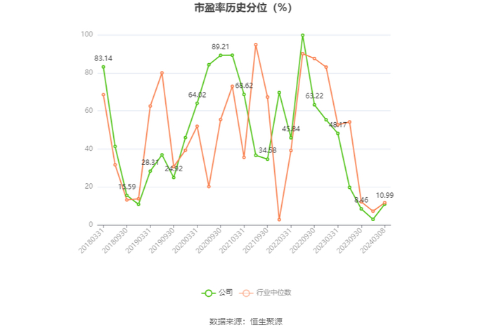 市盈率为负时,不显示当期分位数,会导致折线图中断。