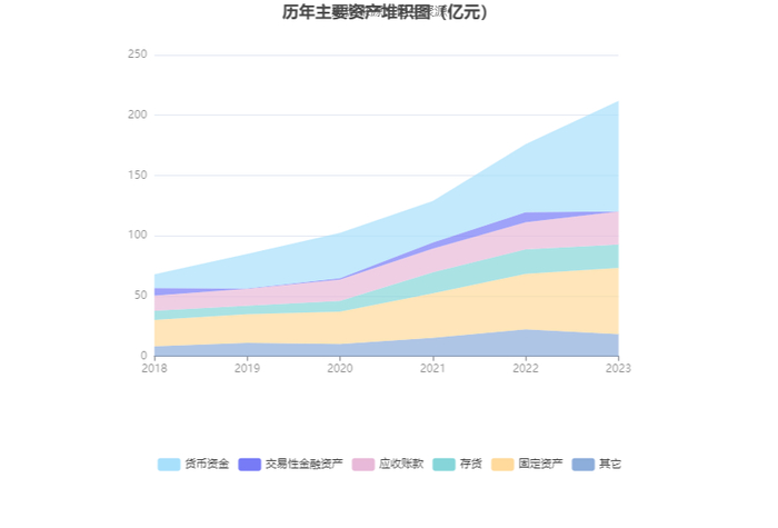 资产重大变化方面,截至2023年年末,公司货币资金较上年末增加62.44%,占公司总资产比重上升11.22个百分点;交易性金融资产较上年末减少99.51%,占公司总资产比重下降4.70个百分点;存货较上年末减少4.00%,占公司总资产比重下降2.34个百分点;应收款项融资较上年末减少34.39%,占公司总资产比重下降1.34个百分点。