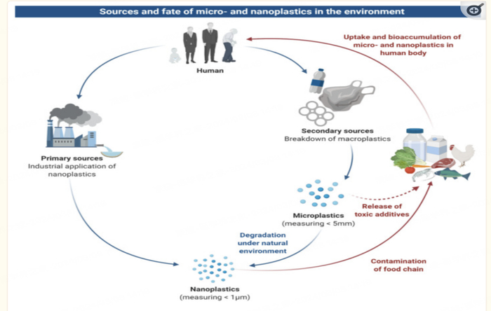 微塑料(MP)和纳米塑料(NP)是一种新兴的环境污染物,微塑料的直径小于5mm,纳米塑料的直径在1nm至1000nm间。按照产生的来源,又可分为“初级微塑料”和“次级微塑料”,前者是人为制造的,目的是进一步加工成可供使用的消费产品,后者则是由较大的塑料碎片破裂、分解逐渐产生。